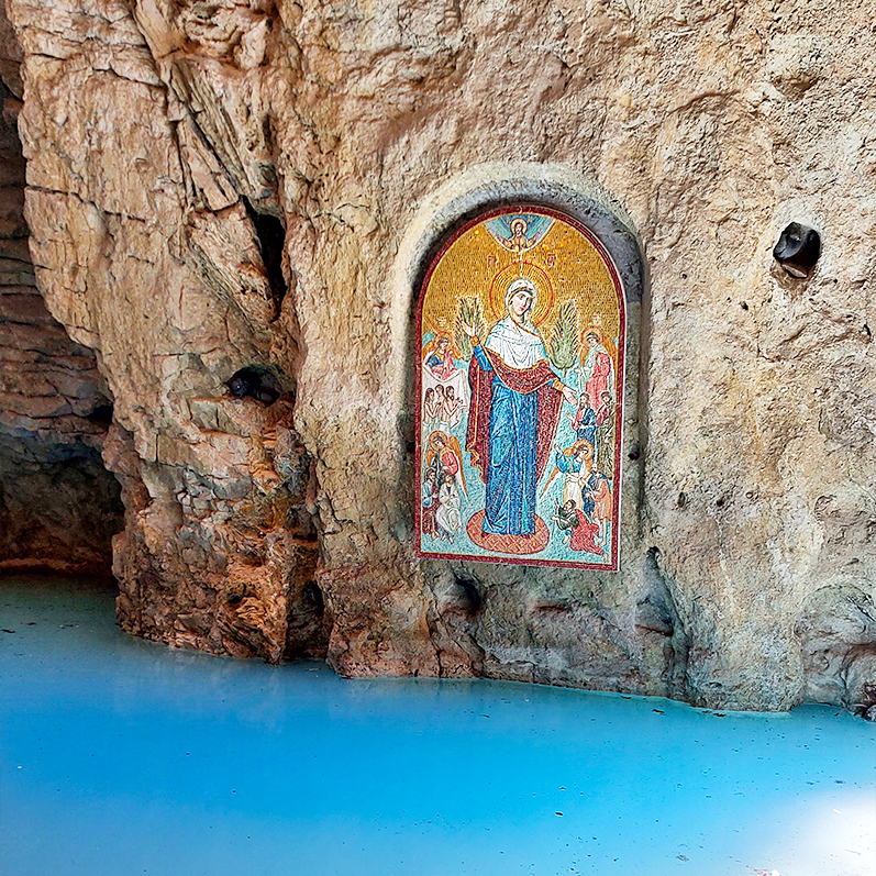 Спустя 20 лет водоём освятили. Икона возле озера Провал – тому подтверждение. Вначале окрестности достопримечательности надежно укрывал от бед лик Богоматери, называемый «Всех Скорбящих Радость». Но позже, учитывая исключительную целебность здешних вод, икону заменили на изображение Святого целителя Пантелеймона, излечивающего болящих. Это произошло в 1998 году, когда достопримечательность отреставрировали и ее повторно освятил митрополит Гедеон. Жаль, нельзя здесь искупаться, ведь озеро Провал зимой остаётся неизменно тёплым: температура воды не опускается ниже плюс 20 градусов.