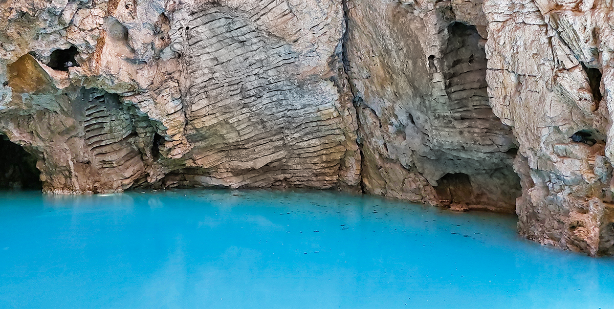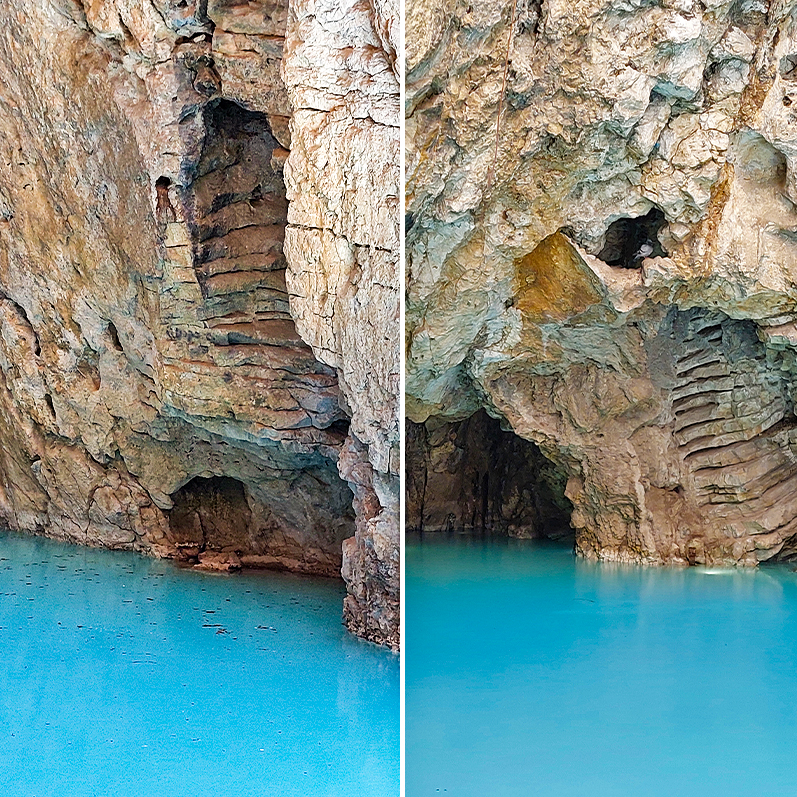 Сейчас тоннель освещен светодиодными лампами, от чего пещера имеет необыкновенный оттенок. И хотя в ней относительно темно – благодаря скромной иллюминации дорога отлично видна. В конце путешественника ждёт смотровая площадка, с которой просматриваются дымчато-лазурные воды озера.