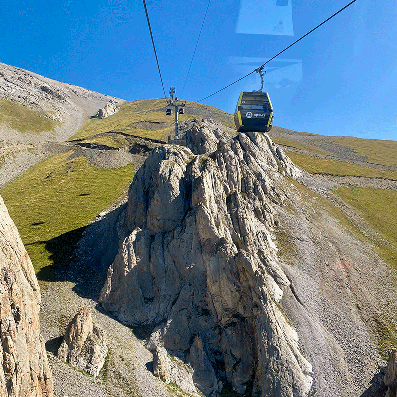 Сегодня в наших планах исследовать Южный склон и походить по хребту с потрясающим названием Абишира-Ахуба. Канатка поднимет нас повыше, затем пешком идем на перевал Федосеева и будем держать путь к Турьему озеру. Как и полагается, озеро красивое, изумрудное)). А вокруг его окружают эффектные скалы.
