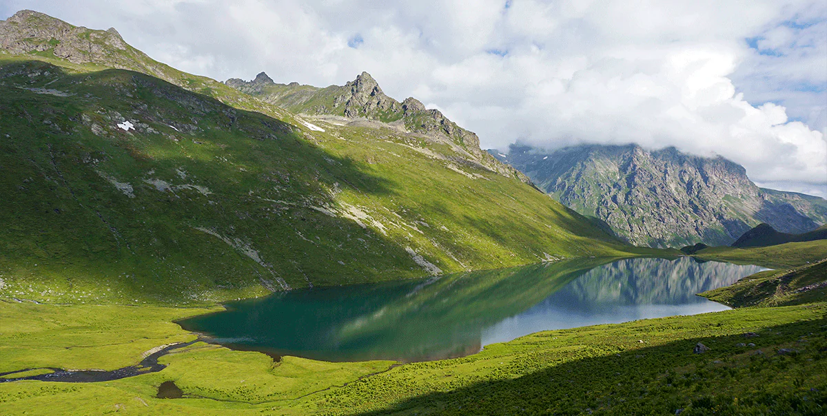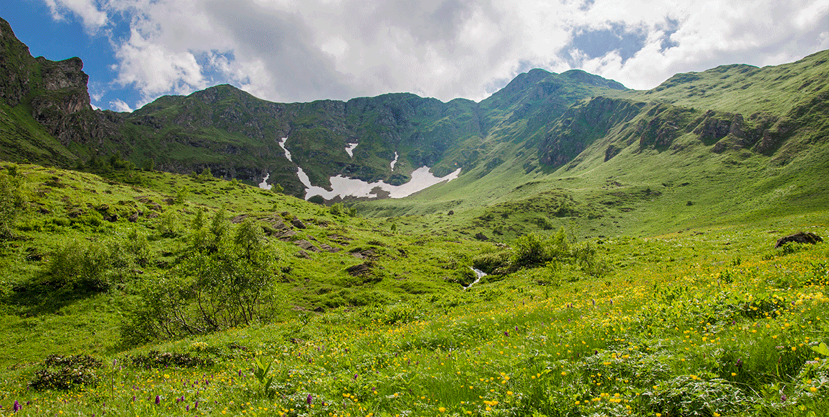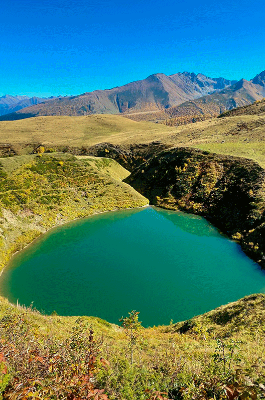 В этих местах раскинулось множество озер. Пройдя через перевал Мылгвал, по пути увидим несколько водоемов, а затем выйдем к нашей главной цели – озеру Кяфар! Это самое огромное озеро Архыза, его гордость!