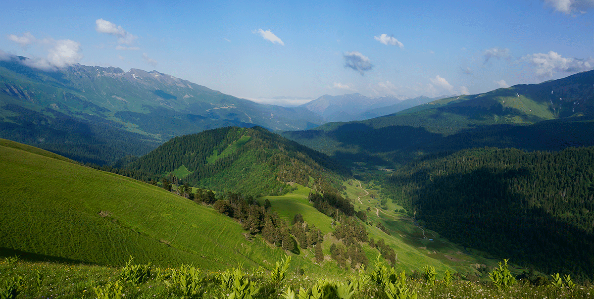 Далее на нашем пути только спуск вниз. Покинув высокогорье, постепенно уйдем в лес и в конце пути выйдем к Белореченскому водопаду.
