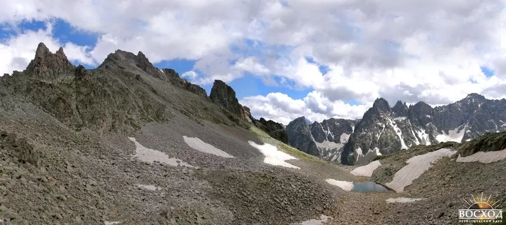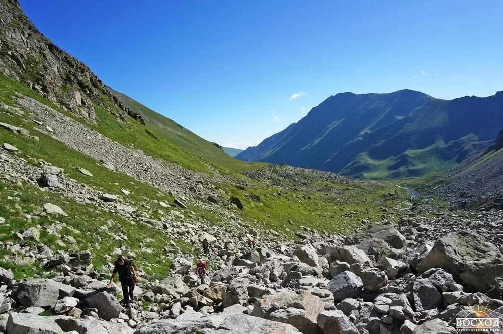 Один из самых простых путей к озеру Хаджибей лежит через ущелье Азгек и одноименный категорийный перевал Азгек (3100 м, 1А).