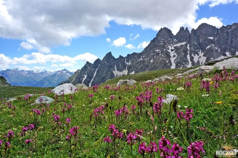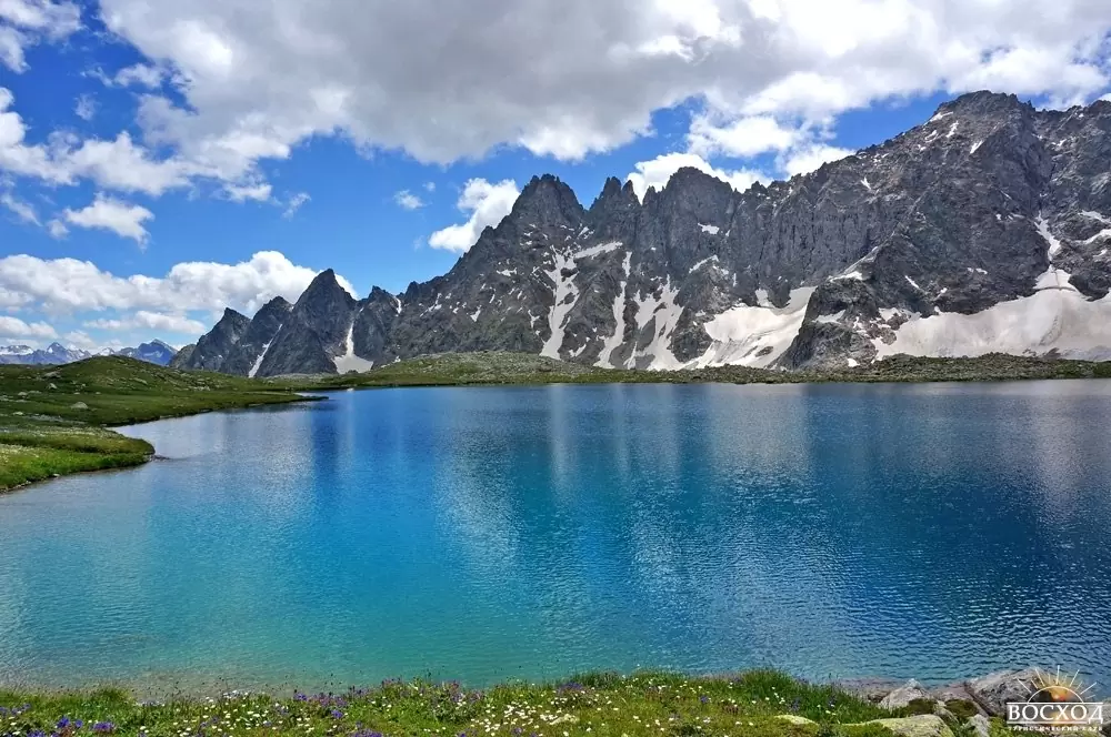 В спокойной глади Хаджибейского озера отражается суровая, но бесконечно красивая горная гряда «Бадукская пила», которая получила свое название за многочисленные острые пики. А дополняют этот потрясающий пейзаж цветущие голубые незабудки, нивяник, розовый горошек и сиреневая герань Ренарда!.