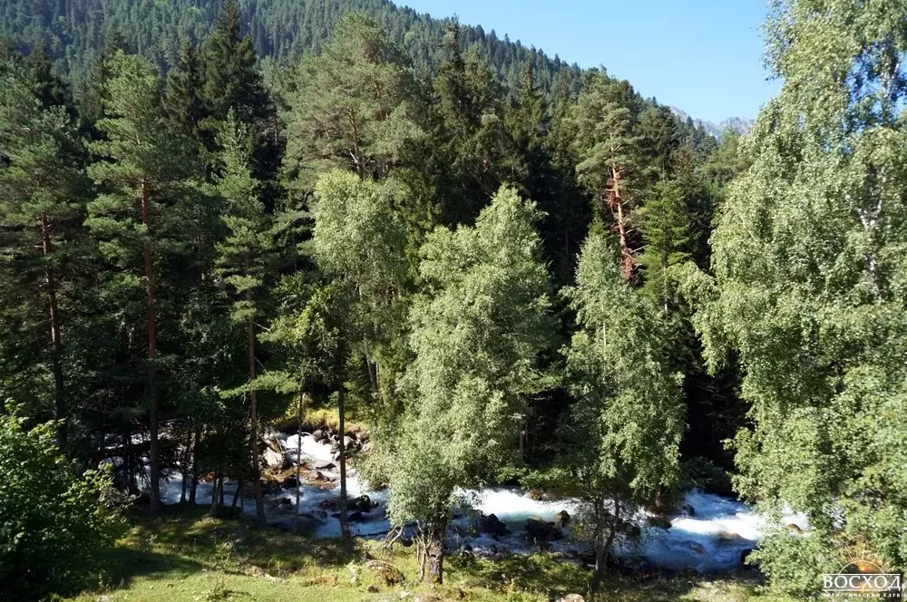 Ущелье Джамагат находится возле города Теберда. Живописный путь в ущелье, длиной в 10 км, можно проделать как пешком, так и на местном транспорте – горном УАЗике.